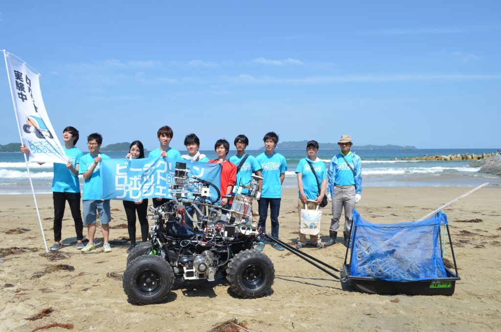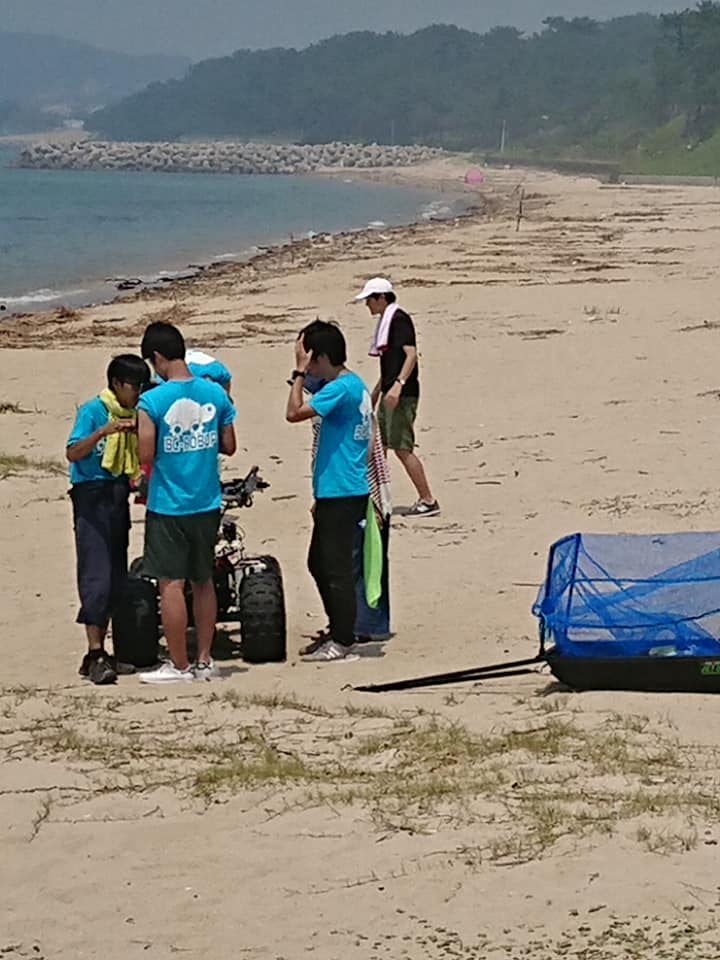 子供たちがロボットと海岸清掃して一緒に遊び、ロボット科学に興味をもって親子で自然のすばらしさ、海の有難さを改めて認識します。
