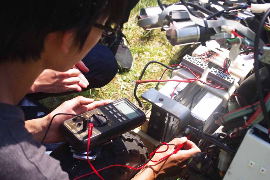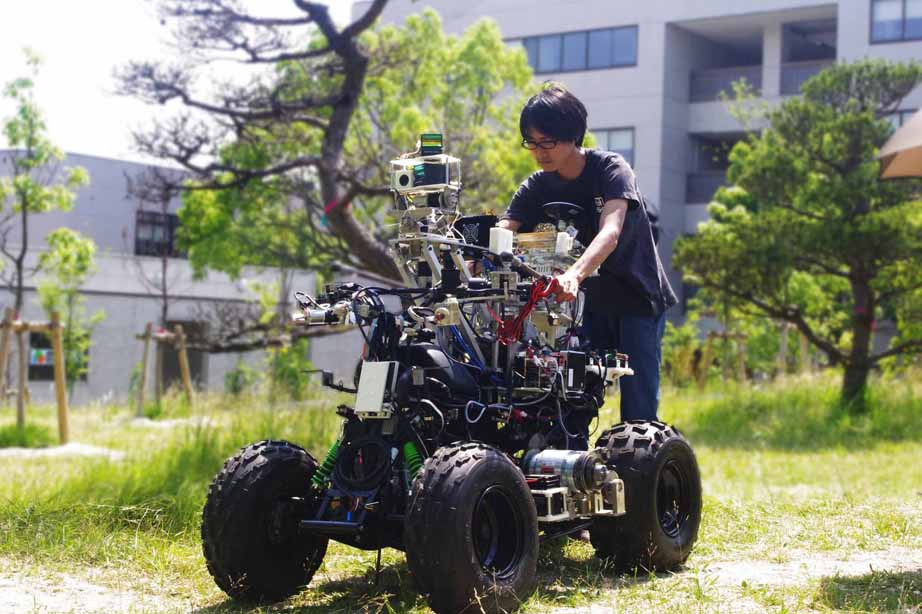 九州工業大学大学院情報工学研究院 知的システム工学研究系(旧名:機械情報工学研究系) 林 英治 (はやし・えいじ) 教授と研究室メンバーが開発している 海岸清掃=ビーチクリーン専用のロボット です。