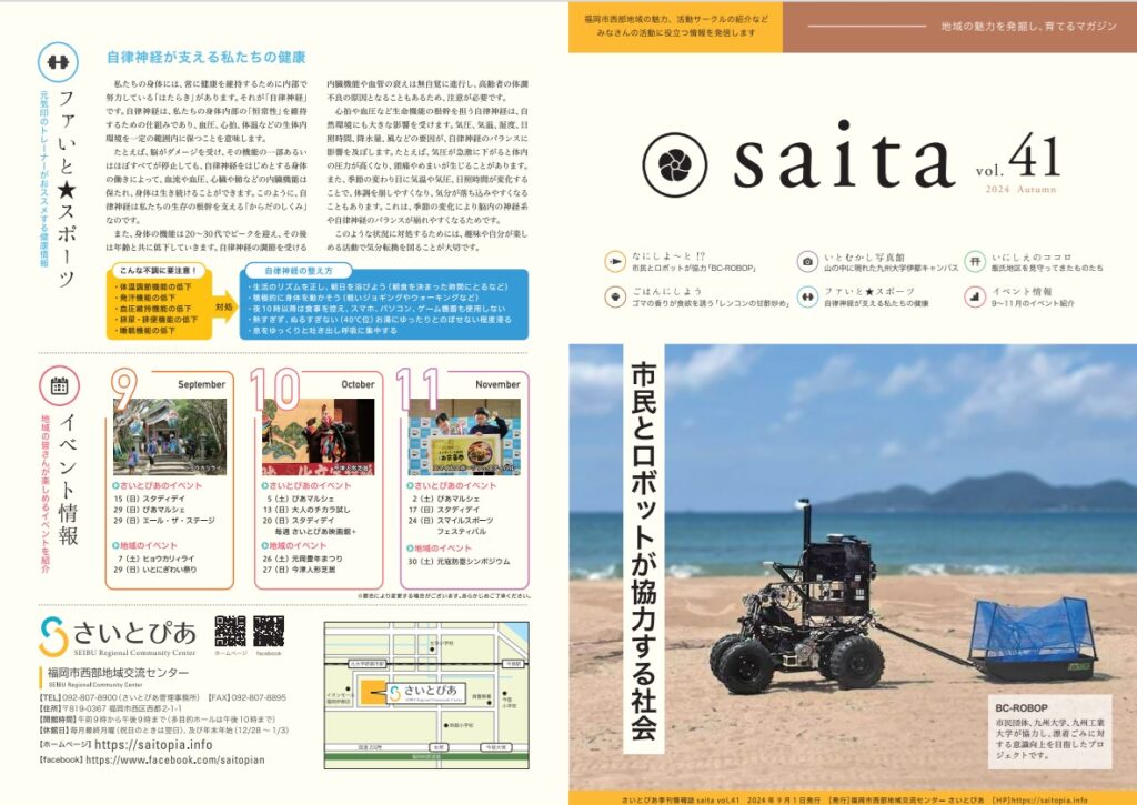 (2024.9.1)福岡市西地区西部7校区の「魅力を発掘し、育てる」ことを目的とした、さいとぴあならではの魅力ある情報を集めた情報誌「saita」に掲載してもらえました